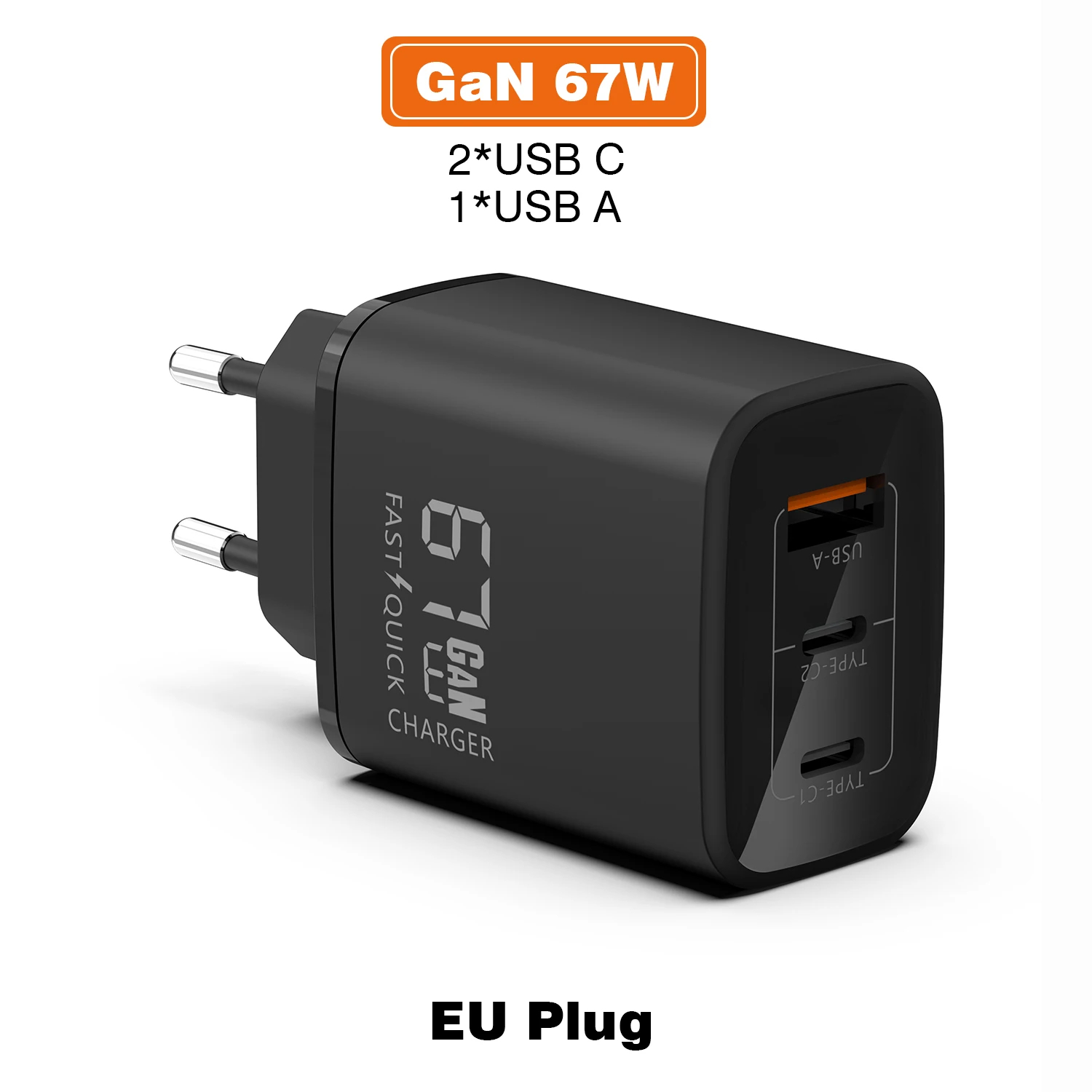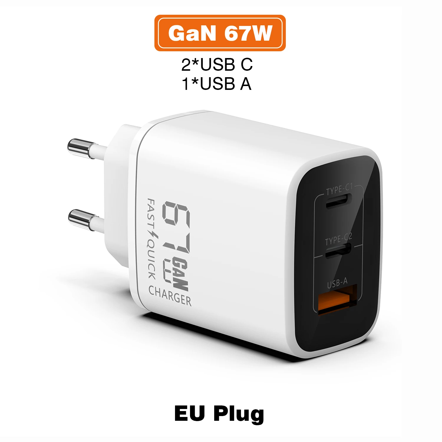 GaN 67W Quick charger type c pd 65w Super fast charger USB C and USB A 3 Ports with QC 4.0 3.0 for Samsung iPhone 15 Pro Laptop