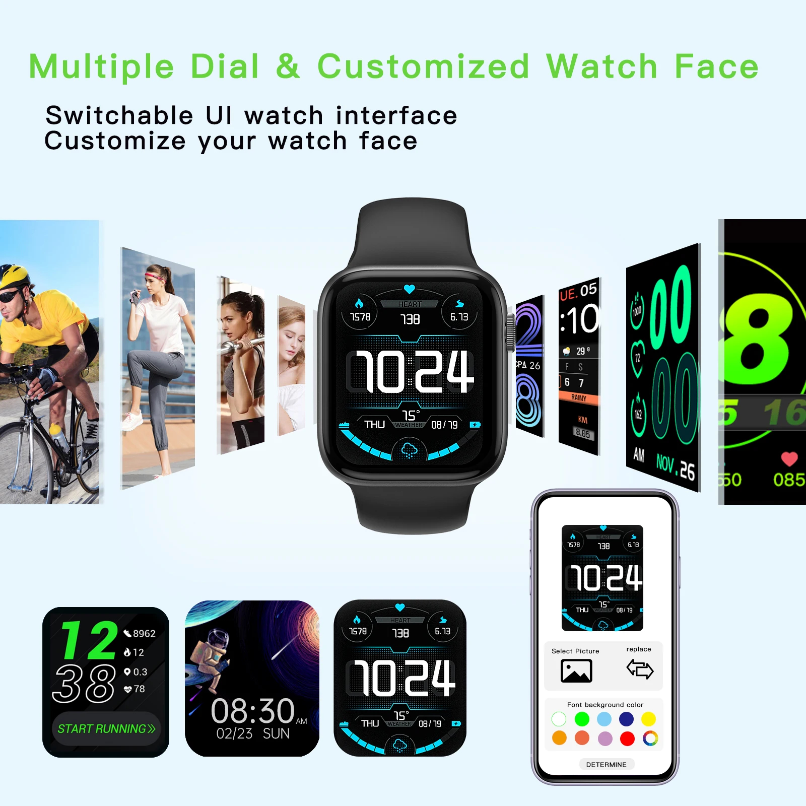 Smart watch, wireless calling /dial, multi -Sport mode, calling reminder and rejection, SMS reminder, information reminder, Vari
