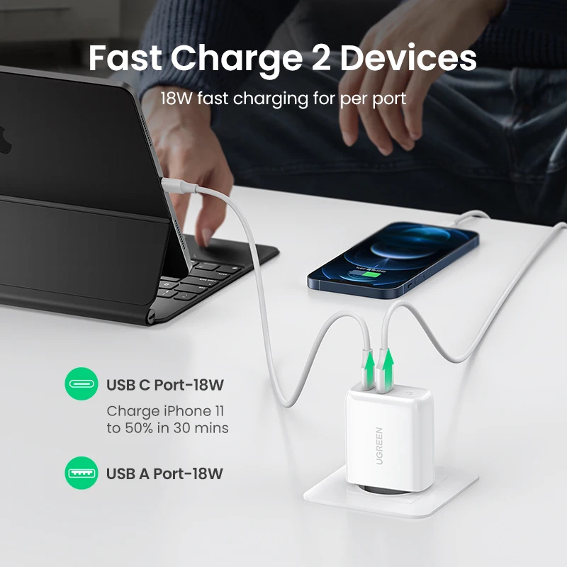 UGREEN 38W Fast USB Charger Quick Charge 4.0 3.0 Type C PD Fast Charging for iPhone 14 13 USB Charger QC 4.0 3.0 Phone Charger